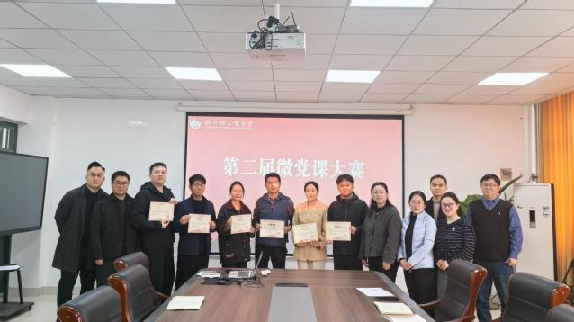 在315会议室举办微党课大赛,学院领导班子成员和各党支部书记出席并担任评委。